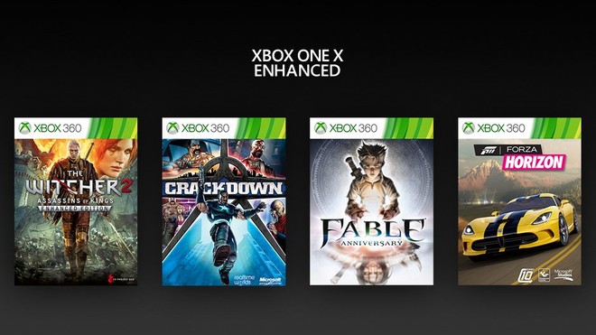 Forza Horizon, The Witcher 2: Assassins of Kings, Fable Anniversary e Crackdown usciti su Xbox 360 sono ufficialmente entrati a far parte della line-up dei titoli Xbox One X Enhanced, e una nuova opzione permette agli utenti di scegliere se giocare al titolo nelle sua forma originale o sfruttando un comparto tecnico avanzato.