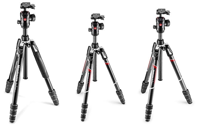Manfrotto ha annunciato i nuovi treppiedi Befree Advanced Carbon, Befree Live Carbon e Befree GT. Advanced Carbon pesa 1,25 chilogrammi ed è dotato di gambe in fibra di carbonio. É inoltre inclusa la testa a sfera in alluminio Manfrotto Advanced 494. Befree GT può reggere fino a 10 chilogrammi di attrezzatura. Il treppiede è stato studiato per contenere l'ingombro durante il trasporto. Una volta chiuso misura 43 centimetri in lunghezza. Befree GT è dotato della testa a sfera in alluminio Manfrotto Advanced 496, una versione più evoluta della 494.
